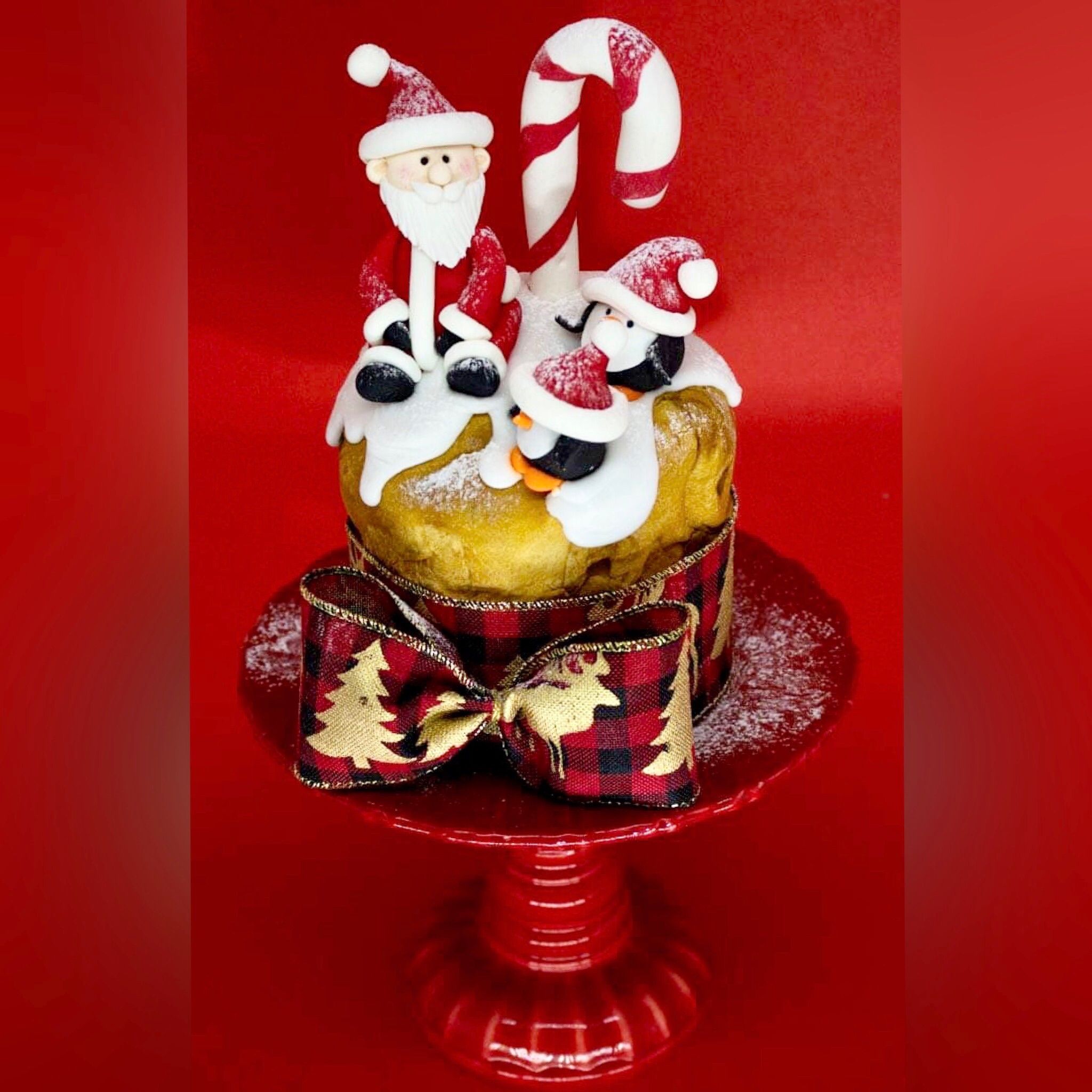 Com os topos de personagens em pasta americana, você pode comprar panetones prontos e transformar em produtos premium de Natal.